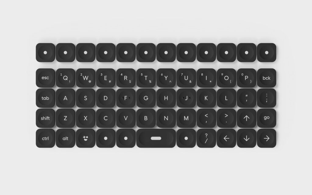 For keycaps, I’m using WorkLouder Legend keycaps. They’re clean, modern, and very intentional looking, which fits the whole industrial sci fi vibe I’m going for. The legends are clear, the profile feels good on Chocs, and honestly they just look right on a device like this. They don’t scream “custom keyboard”, they feel more like something that belongs on specialized equipment.